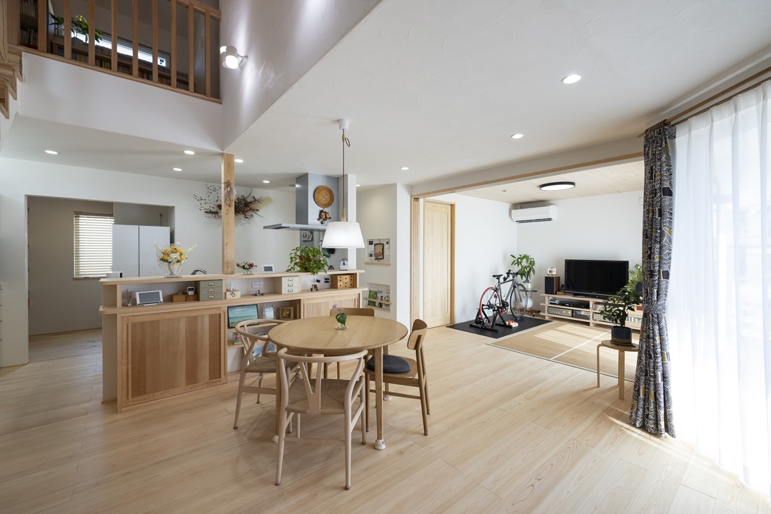 1階と2階をつなぐ吹き抜けは、家族のこころもつないでくれる。